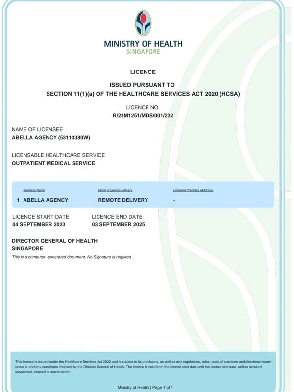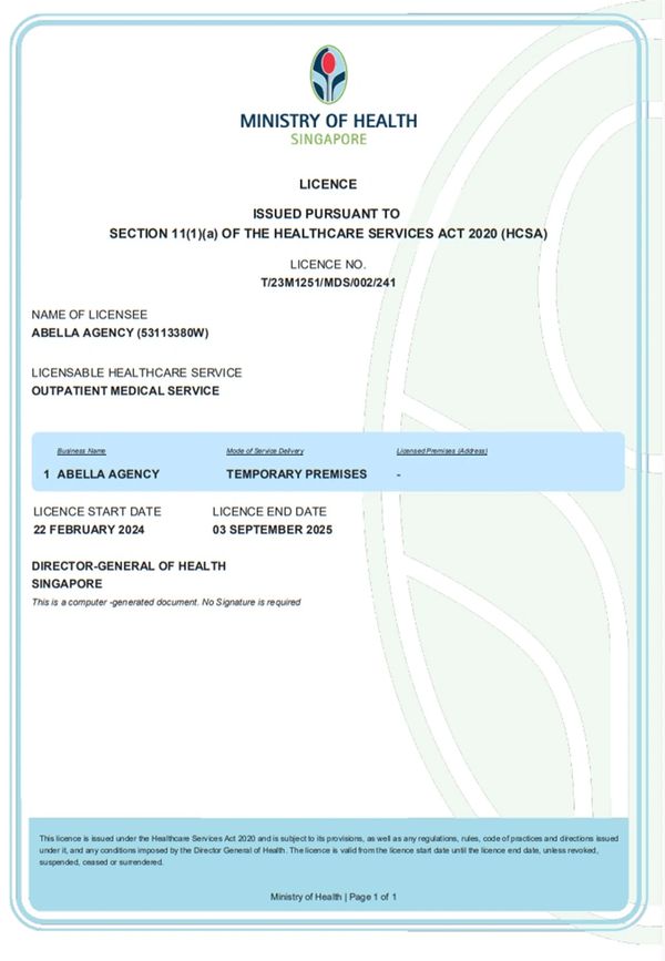 The company currently has a nurse director, operations manager, business development manager, and staff nurses licenced under the Singapore Nursing Board.